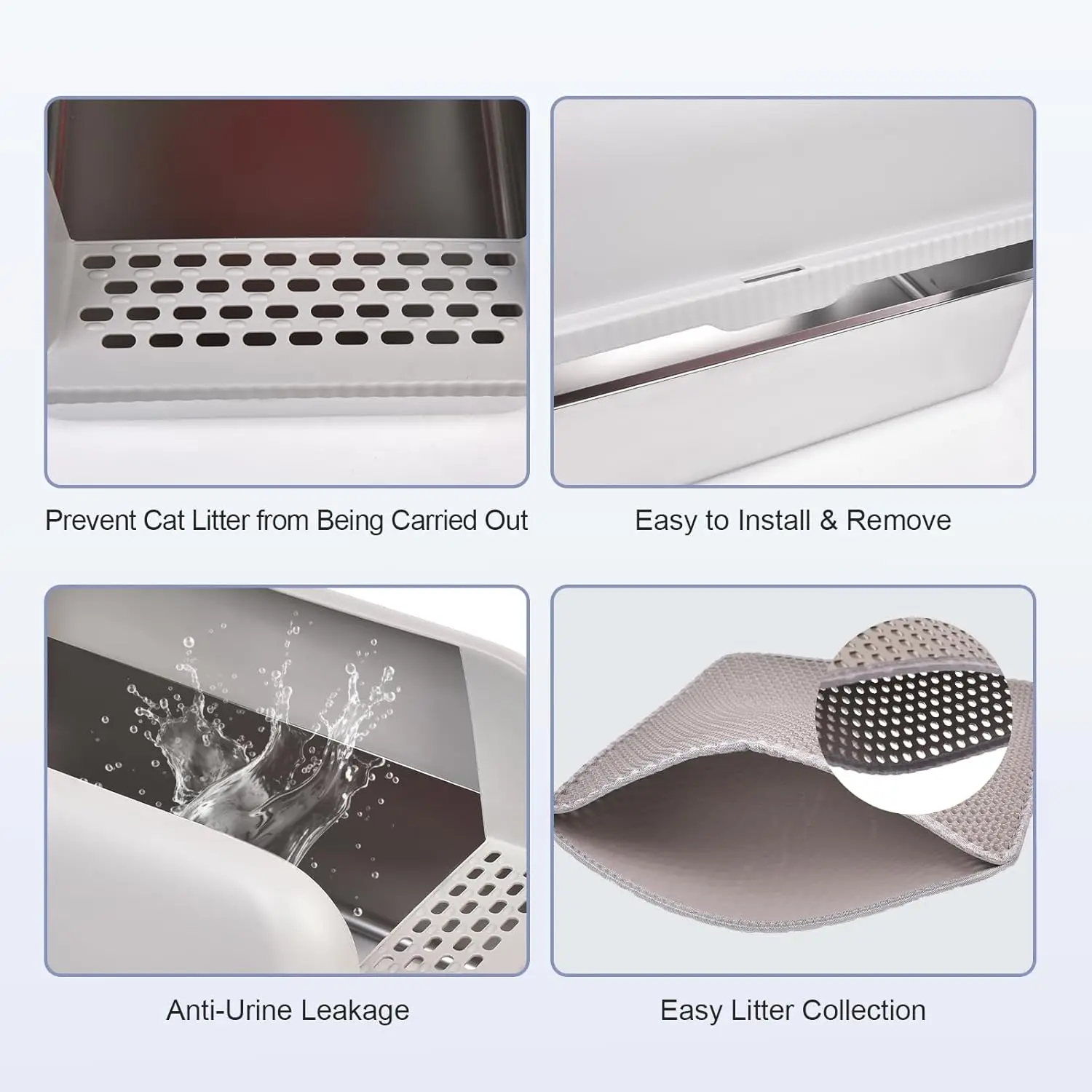 MAINTAIN A CLEAN LITTER AREA – Reinforced plastic enclosure clasps firmly on the high sided stainless steel cat litter box, won’t be kicked off easily when your cats jump out. The overlap design keeping the urine in the box instead of seeping through the seam. No more worrying about cat urine spilling everywhere. The stainless steel litterbox with high sides designed with the unique filter pedal helps stop cat litter from getting tracked out, keeping the floor tidy and reducing litter waste